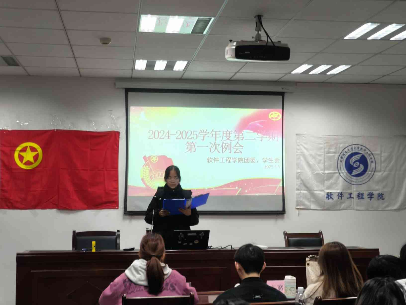 2025年3月5日,tyc33455cc太阳成集团团委、学生会于航空港校区双中心A502教室召开本学期第一次例会,tyc33455cc太阳成集团团委书记胡培老师,软院团委、学生会主席团及各部门部长参与本次会议。
