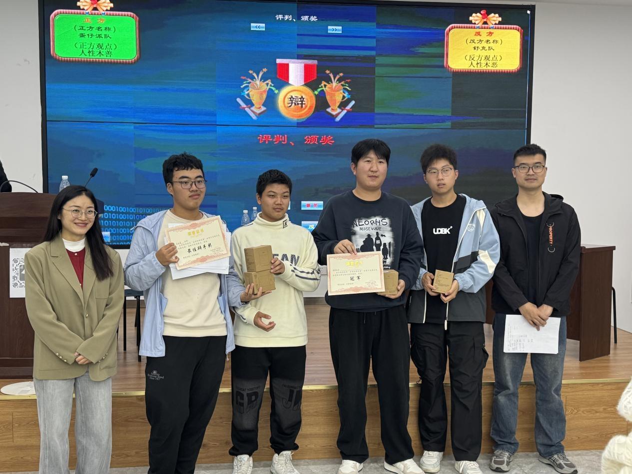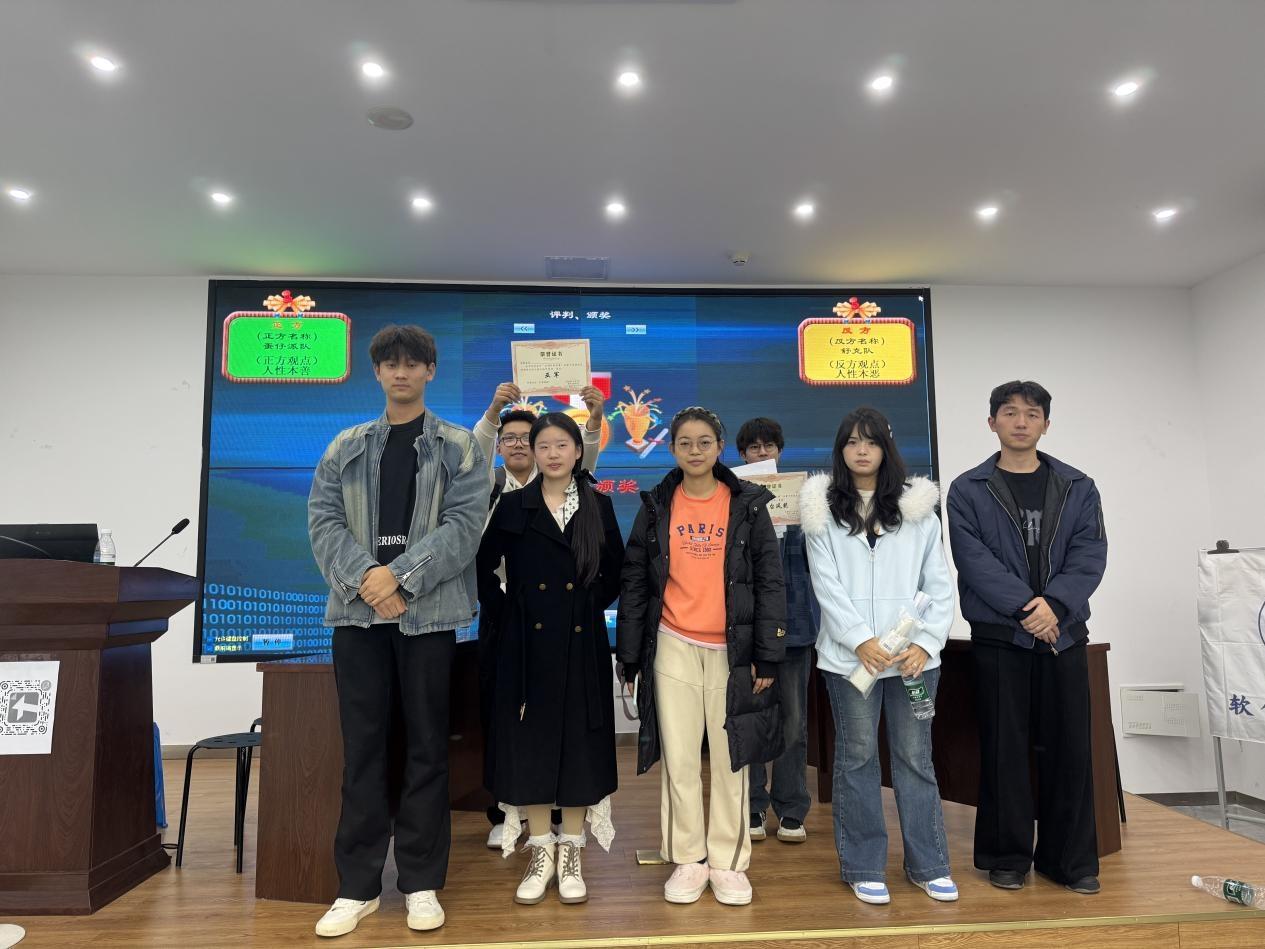 最后,在冠亚军争夺赛中,“舒克队”和“蛋仔派队”围绕“人性本善还是人性本恶”这一经典而又深刻的议题,展开了更为激烈的辩论。双方辩手各展风采,最终,“蛋仔派队”凭借更为严密的逻辑、更具说服力的论据和出色的团队协作,获得了最终胜利。李瑞霖同学再次凭借出色表现获得“最佳辩手奖”,唐绍睿同学则以沉稳大气的台风荣获“最佳台风奖”。