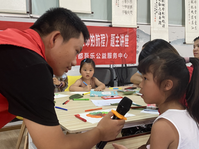 一开始,万娟老师用叶子引出话题,通过谈话的方式了解孩子们与家长们对生命的认识。之后,据此为大家讲解了生命的珍贵,并引导家长们要对孩子们进行正确的生命的教育。为了让孩子们加深对生命更宏观的概念,万娟老师给大家播放了有关大自然与人类关系的主题视频,并在视频播放完之后引导孩子们画出自己心目中的大树送给自己的家长。演讲结束之后,进行的是党史的讲解,志愿者们用振奋人心的图片与视频对百年党史娓娓道来,加深了大家对党的了解。党史讲解完毕,万娟老师带领志愿者们与小朋友进行了人生三部曲、鸡蛋小鸡大鸡、相反大小西瓜与传水瓶的游戏,将整个活动推到了高潮。游戏过程中,现场气氛热烈,所有人员都参与了游戏。小朋友们在游戏中学会了互相帮助、团结友爱的道理,并在游戏之后获得了丰厚的奖品,玩得不亦乐乎!