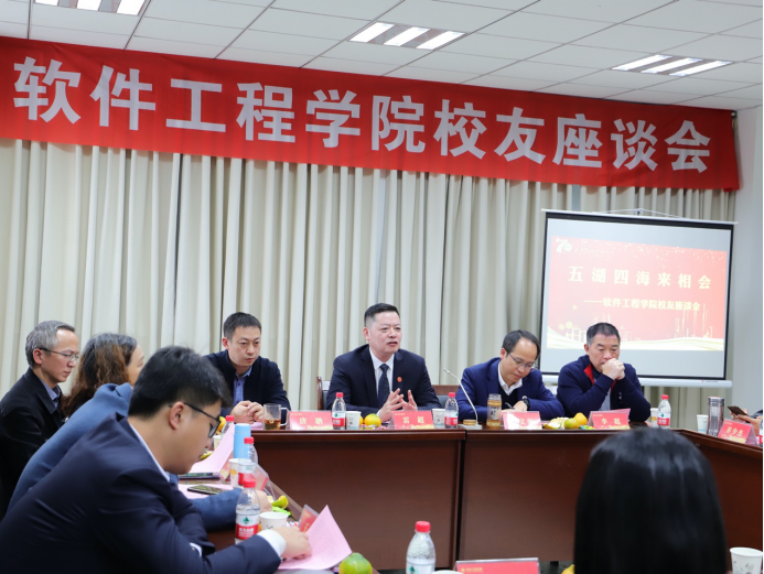 座谈会上,校友们为学院和学校的发展成就感到自豪,深情回顾了在校学习生活的点点滴滴,纷纷表达了对学院、学校培养的感恩之情,分享了自己毕业后的经历、感悟和取得的成绩。2003级校友李强强作为学院校友会会长,呼吁校友们积极参加校友会,加强与学校的联系;2003级校友李仁超建议学院在制定人才培养方案时要充分结合产业需求,建议聚集校友力量,加强与学院的合作共建,促进共同发展;2014级校友邓为在现场有感而生,即兴创作诗歌“我将生命里的青翠时光埋在这里,泥土里有我的泪水……”。校友们虽然毕业,仍然心系学校,心系软工,为学院今后的发展献言献策。