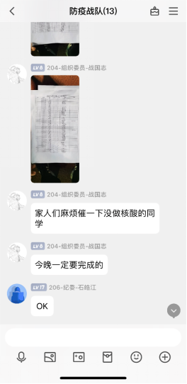 学院认真贯彻落实习近平总书记关于在疫情期间加强心理干预和疏导,有针对性做好人文关怀的重要指示精神。院领导、辅导员及时深入核酸检测现场、学生宿舍和食堂,了解学生的思想动态,收集学生对疫情防控工作的意见、建议,积极开展心理疏导。