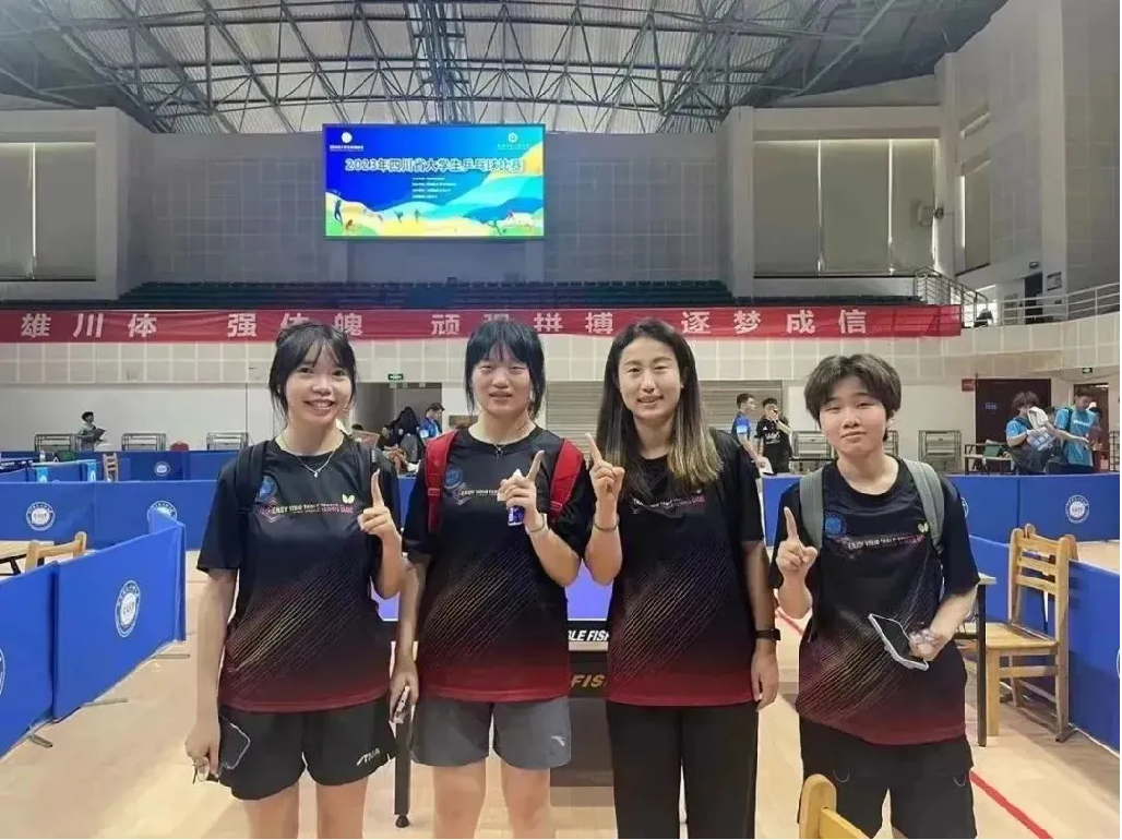 6月11日,2023年四川省大学生乒乓球比赛在我校成功举办。我院张可怡同学与网络空间安全学院梁淼琦、漆诗义、黄秋实等4名同学代表我校乒乓球女队参赛,并获得女子团体冠军。