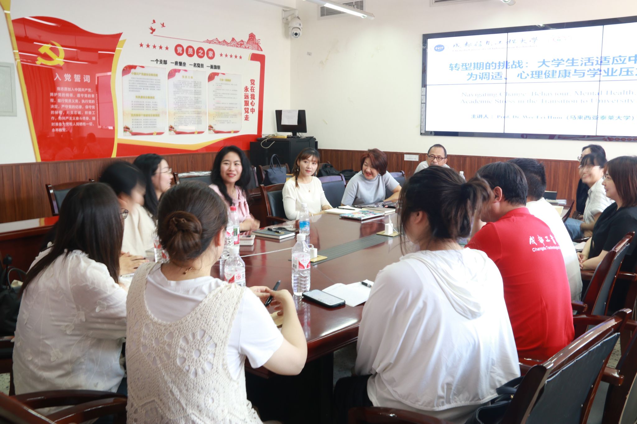 5月19日,成都工业学院团委书记兼学工处副处长白杨率该校省级名辅导员工作室“聆听心坊”辅导员工作室成员到我校,与我校省级名辅导员工作室tyc33455cc太阳成集团“博雅心语”辅导员工作室开展交流。两工作室全体成员、我校学生处心理健康教育中心教师代表参加交流。活动还特邀马来西亚泰莱大学心理学专家Prof.Dr.Wee Lei Hum作有关心理支持事务探索的学术沙龙。