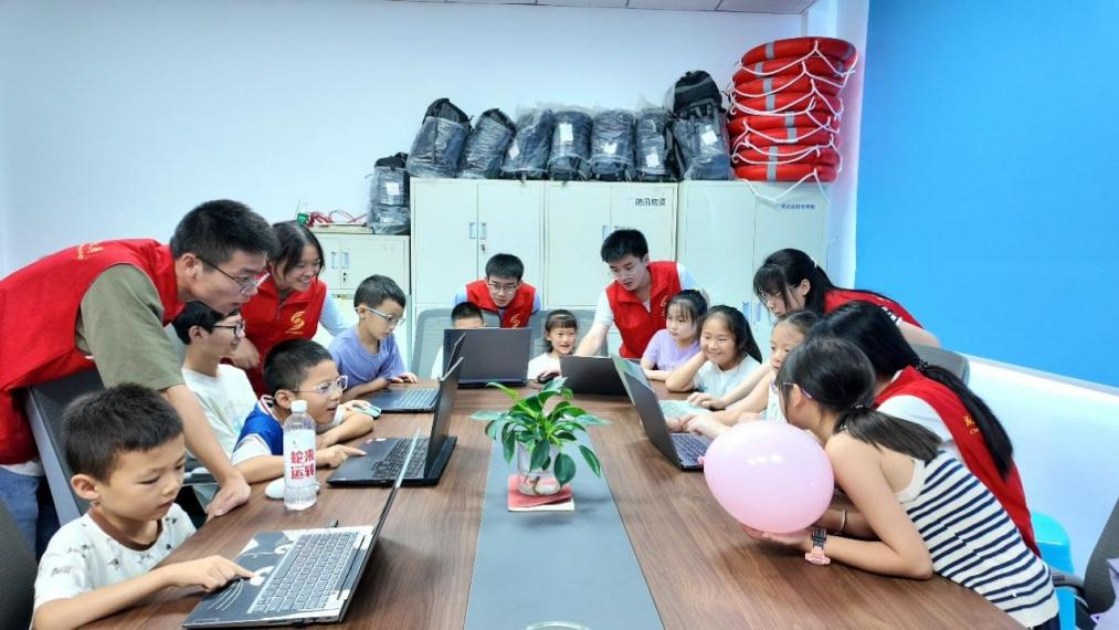 本次实践内容分为文化传承、科技赋能和民生关怀三个板块。在文化传承活动中,实践队特邀专业老师开展扎染和竹编技艺研学活动,通过“工艺解析+沉浸体验”模式,让志愿者在蓝白交织的扎染艺术与经纬交错的竹编技艺中,触摸中华文脉的千年传承。在科技赋能活动中,志愿者联合德新镇团委,围绕安全意识、科技创新、艺术素养等主题,为当地少年儿童科普气象防灾减灾知识,开展编程思想启蒙课程。在民生关怀活动中,开展了反诈宣传和暖心陪伴。志愿者针对当前基层面临的反诈意识薄弱问题,通过问卷、走访等形式了解村镇民众的反诈意识,开展反诈游园活动,200余名村民在趣味互动中提升防骗能力。志愿者拜访了三户空巢老人,开展了打扫卫生、共制午餐、陪伴谈心等服务,将“尊老敬老”的传统美德转化为可触可感的民生温度。