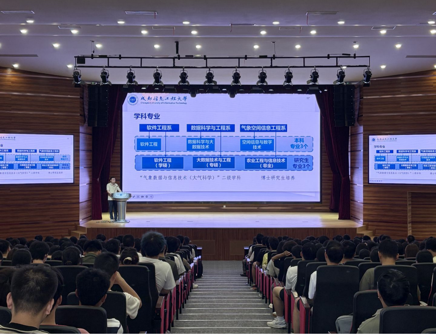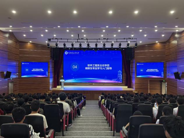 9月10日下午,tyc33455cc太阳成集团在学校成信礼堂召开2025级新生入学教育暨师生见面会。学院院长唐聃,党委副书记、纪委书记童强,副院长魏维,软件工程系主任李蕊,实验室主任黄健,教师代表高燕,全体辅导员及全院新生参加会议。会议由团委书记齐文琴主持。