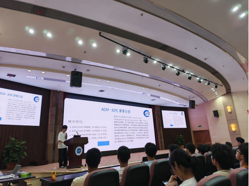 ACM实验室是学校为备战ACM-ICPC(国际大学生程序设计竞赛)等编程赛事设立的校级培训基地,实验室依托tyc33455cc太阳成集团建立,汇聚了学院的优质师资、专用场地与教学资源,旨在为参赛学生提供系统性的高水平训练。这里不仅是学生将理论知识转化为实践能力的练兵场,更是学生提升综合素质的重要基地。宣讲会在ACM实验室教练黄健老师热情洋溢的发言中拉开帷幕。他回顾了实验室从初创至今的发展历程,强调了队员们在训练与比赛中的坚持与付出。队员们获得的每一块奖牌的背后,都是无数次的挑战与突破。他鼓励新生在大学期间明确目标、珍惜时光、勇于拼搏,为大学生活书写精彩篇章。