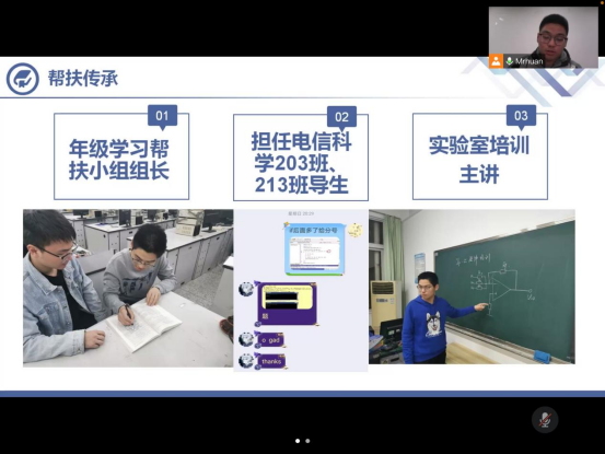 通过线上观看了报告会。报告会采用线上视频交流的形式进行,由网络空间安全学院信息安全183班何俊湫、电子工程学院电信科学191班黄熠昕、tyc33455cc太阳成集团软工186班李毅3名优秀党员学生代表向大家介绍自己的入党历程和励志前行奋发有为的感人事迹。