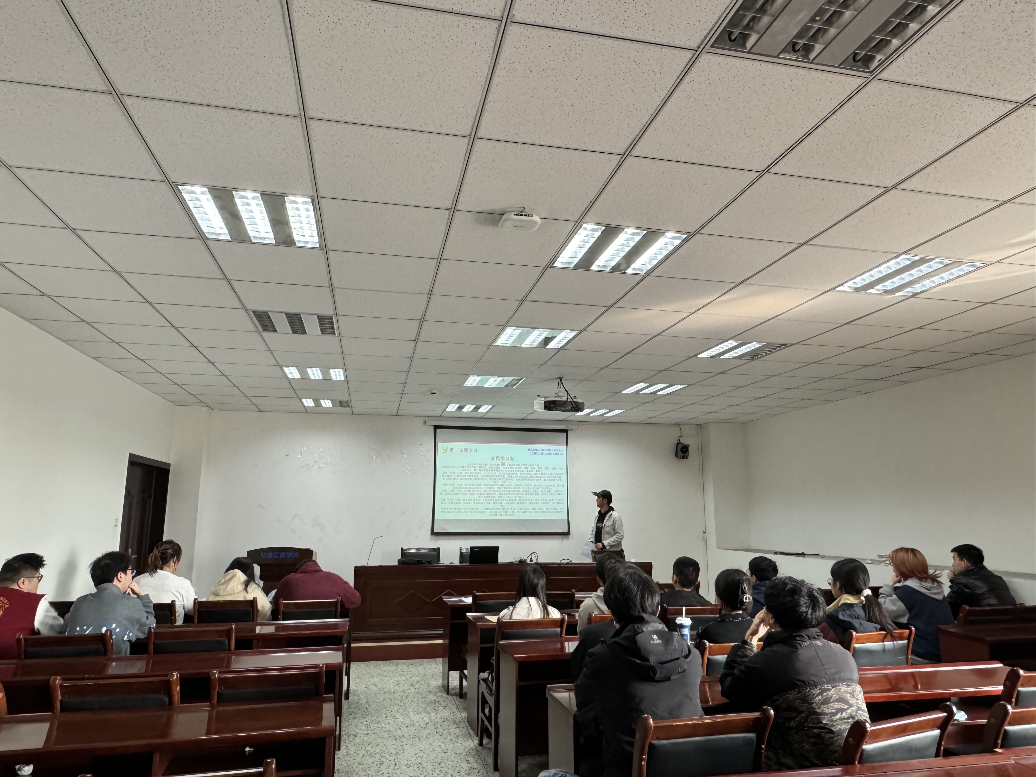 11月21日下午,学院学生第四党支部在信达楼A502召开全体党员大会,开展专题理论学习,支部书记齐文琴主持会议。