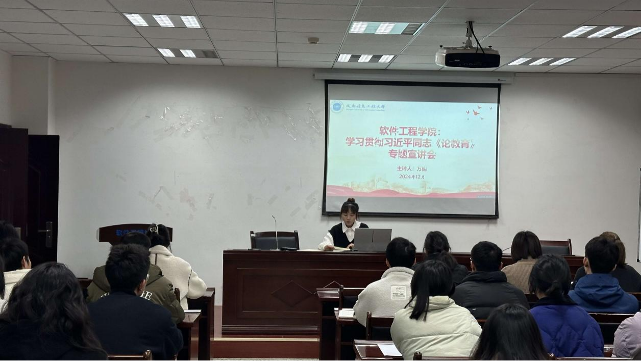 万娟同志首先对《论教育》的背景和主要内容进行了导读,重点解读了其中关于“教育是国之大计、党之大计”的重要论述。她还结合支部成员的学科特点,阐述了新时代教育改革与信息化发展对青年学生的要求,并鼓励大家将学习成果转化为实际行动。