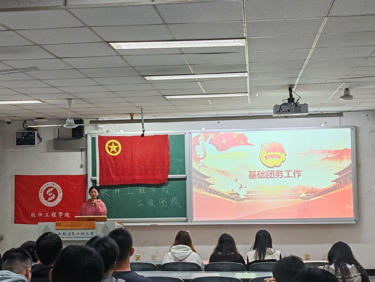 培训会上,伍蔚芝同学详细介绍了班团一体化、网上共青团、第二课堂成绩单业务培训以及实施方式,讲解了智慧团建平台的使用方式,让同学们更加深入了解智慧团建的实施,接着讲解了基层团组织纪律整顿和工作规范化的相关要求,提出了总体要求,主要任务以及组织实施开展的重点,最后从自身出发介绍团组织的推优和成为入党积极分子的具体流程,解答了许多大一同学的困惑。