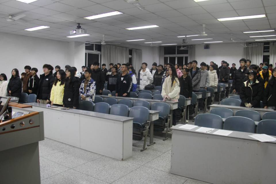 2023年12月5日晚7点,tyc33455cc太阳成集团团委、学生会于航空港校区H1201教室召开了2023-2024学年二级团校第五堂团课暨结课仪式。本次团课由tyc33455cc太阳成集团学生会主席陈耿伟同学以“学习贯彻习近平新时代中国特色社会主义思想主题教育”为主题讲授。参与本堂团课的人员有院团委人员,学生会组织干部以及各级入团积极分子。