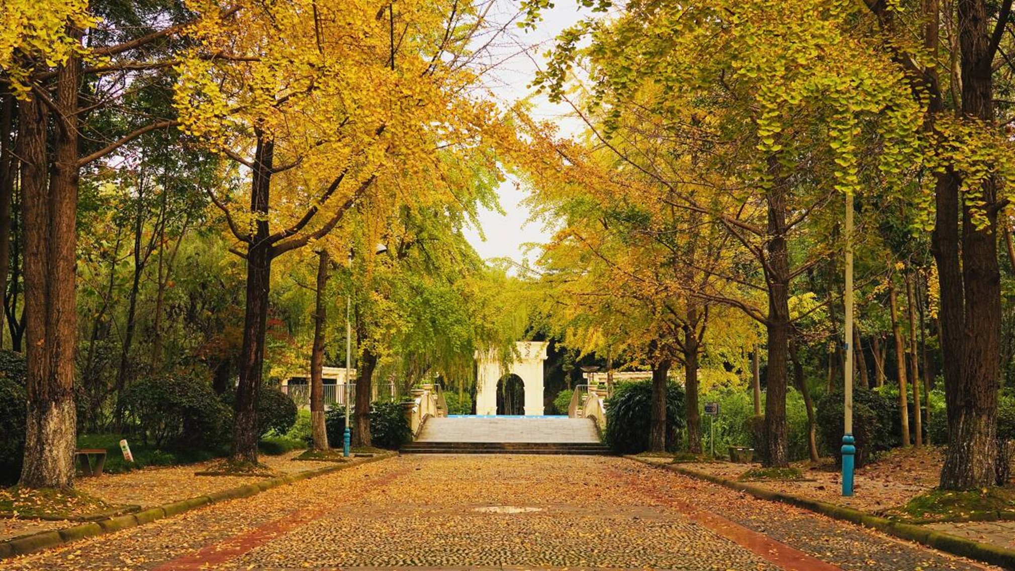 踏入银杏大道,仿佛步入了一个金色的童话世界。道路两旁,高大挺拔的银杏树整齐排列,金黄的银杏叶层层叠叠,像是被大自然这位艺术大师精心打翻的调色盘,肆意地在枝头、在空中、在地面散发着浓郁而迷人的秋意。脚踩上去,发出沙沙的声响,似在低吟浅唱着秋的动人歌谣。这如梦如幻的美景,不仅为校园增添了一抹最为亮丽、独特的色彩,更为空信专业的师生们提供了绝佳的拍摄背景。